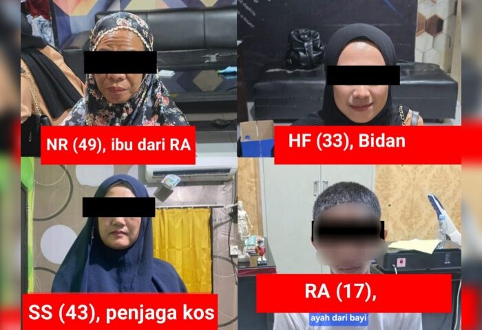 Dari kelima komplotan pelaku aborsi, empat orang di antaranya telah diamankan, yakni NR (49), SS (43), HF (33), dan RA (17). Sementara satu orang lainnya berinisial RS (28), masih dalam pencarian.